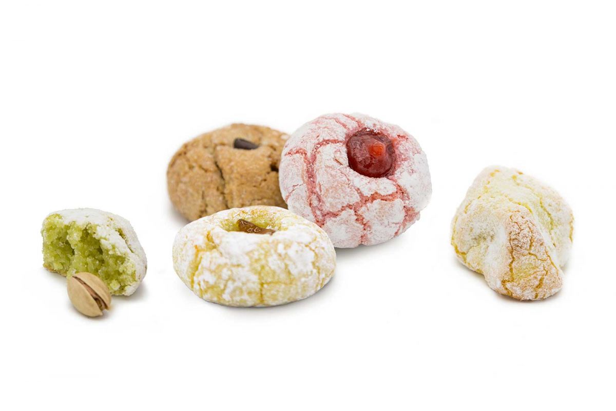 Paste Ricce (“Curly pastries’) from Pasticceria Angelo Inglima are soft almond biscuits, made from scratch following traditional Sicilian recipes. Paste Ricce are biscuits made of Pasta Reale, which translates to “royal pastry” and refers to the traditional almond pastry popular in every corner of Sicily. Paste Ricce have a crispy crust coating a...